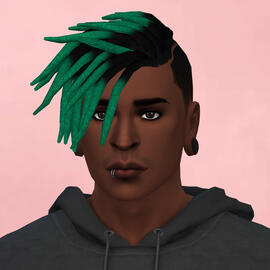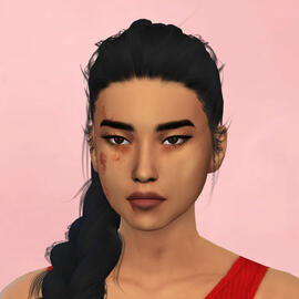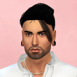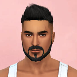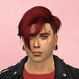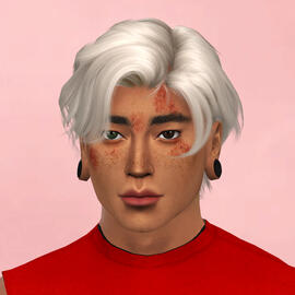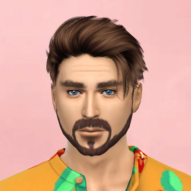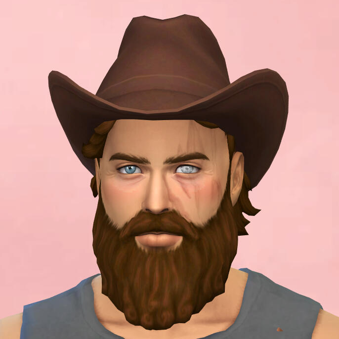 physical description: 5'9", buff but with a dad bod, blue eyes (blind in left), short reddish brown hair & messy beard, scar from head shot on left side of face, his sim is not that great i did my best but it's so hard to make conventionally unattractive people