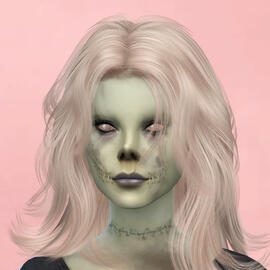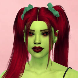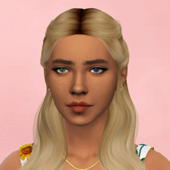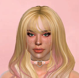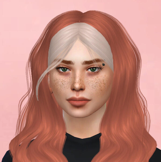physical description: 4'11", a little thick, green eyes, wavy/messy past shoulder length strawberry blonde hair with white streaks in the front, left eyebrow pierced, multiple ear piercings, freckles across cheeks and nose